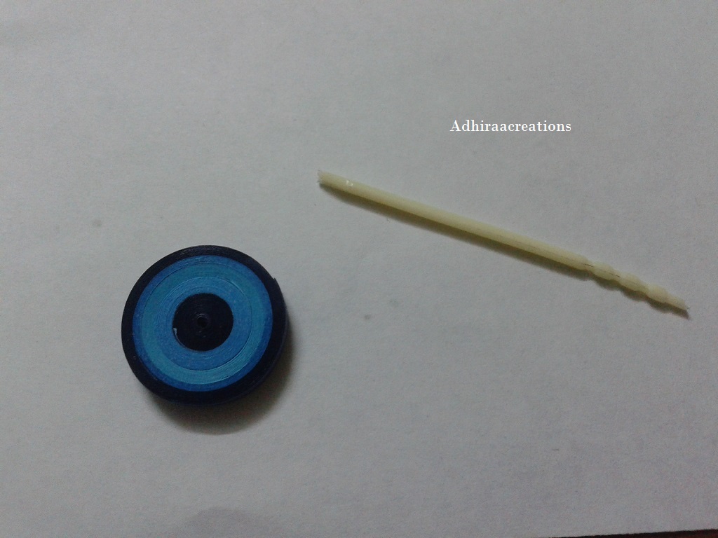 Make a tight coil with dark colour in the middle and outer. I have used toothpick to these coils.